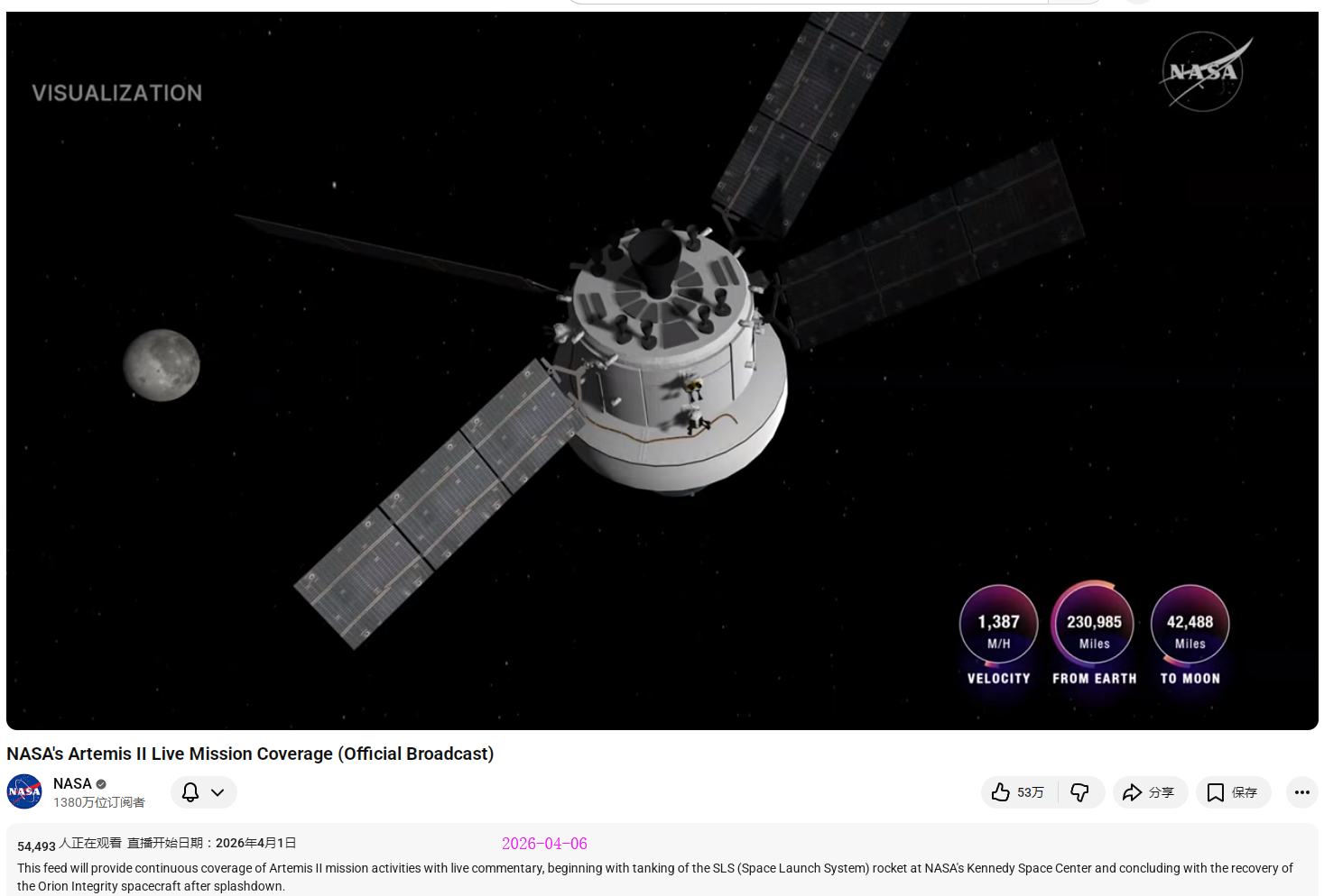 2026年4月1日,NASA 的**阿尔忒弥斯2号(Artemis II)**任务正式从佛罗里达州肯尼迪航天中心发射升空。根据目前的任务进展和计划,以下是您关心的具体信息: